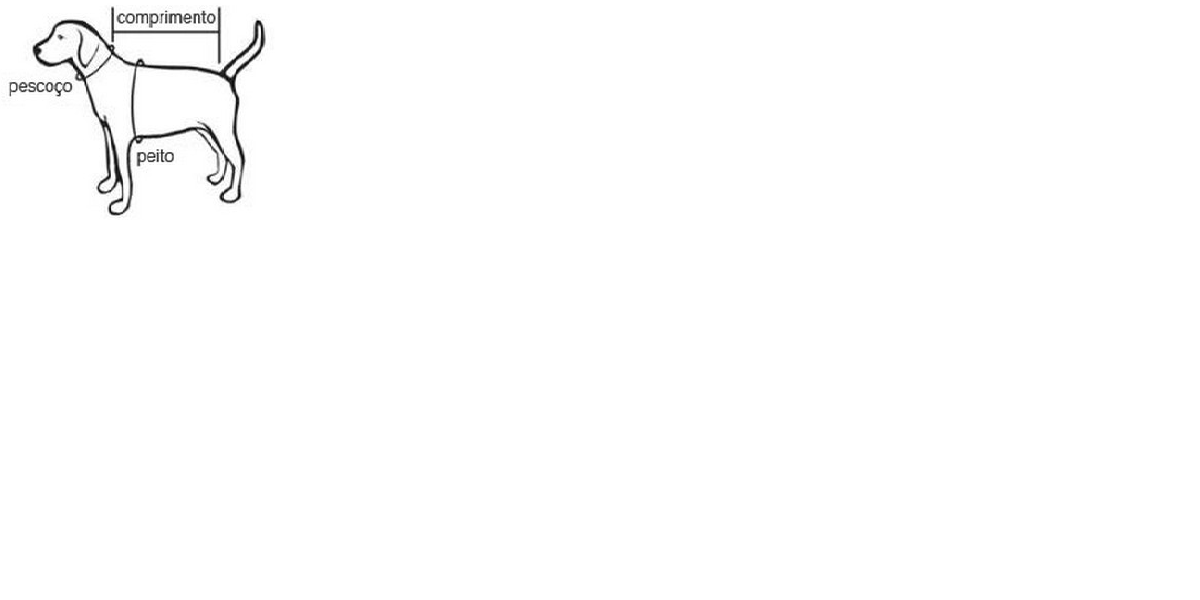 P: Comprimento 25 cm - Contorno do peito 39 cm - Contorno do pescoço 26cm